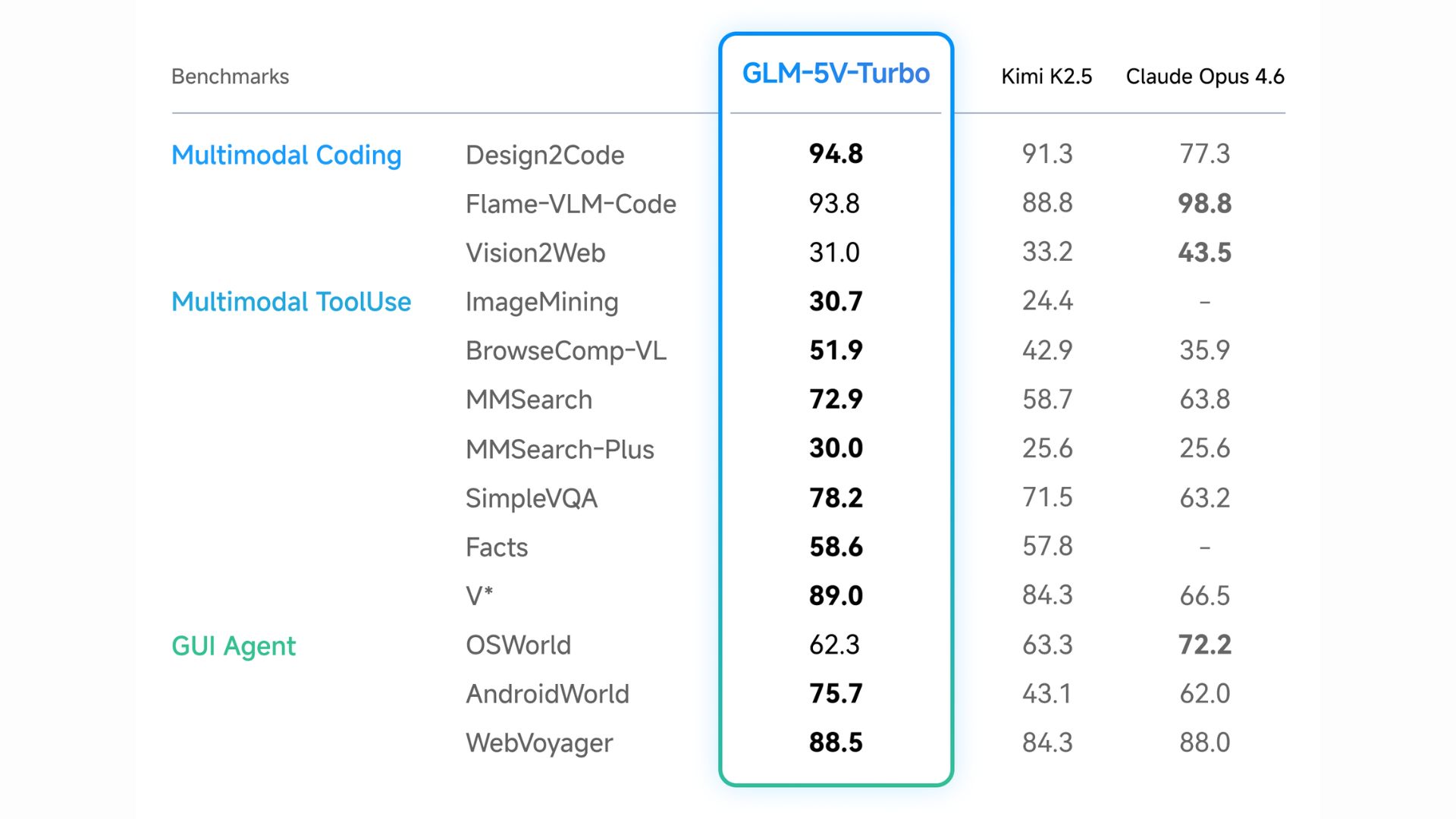 Agentic Optimization: GLM-5V-Turbo is deeply integrated for workflows involving frameworks like OpenClaw and Claude Code, mastering the "perceive → plan → execute" loop for autonomous environment interaction.