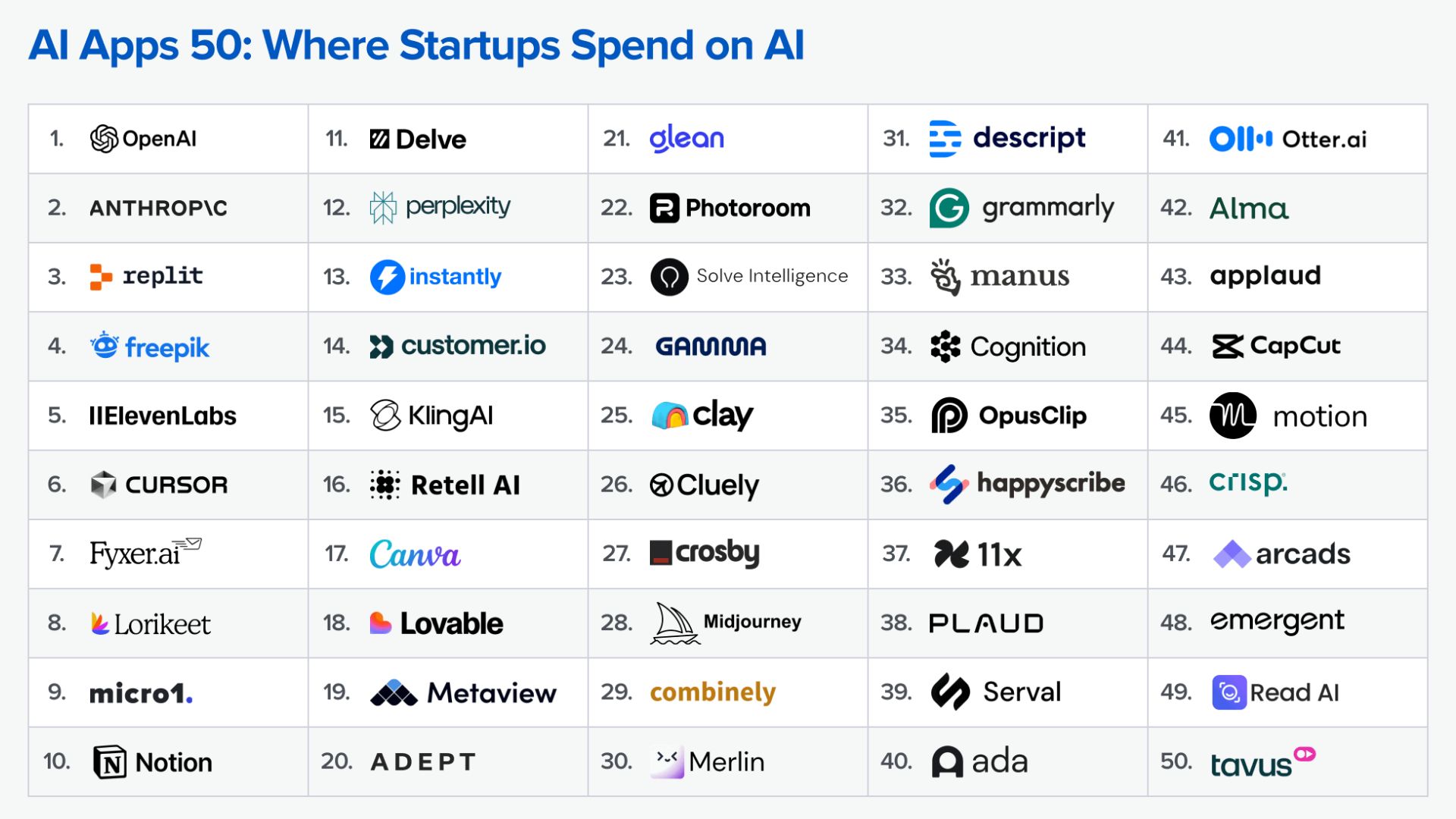 → Top spenders: OpenAI (#1) and Anthropic (#2)