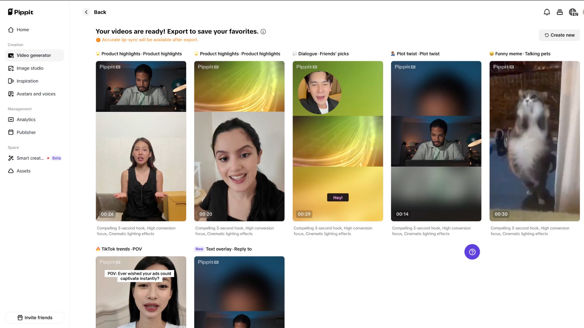 Once your parameters are set, hit the generate arrow. Pippit will process your inputs, whether you are creating a "vibe marketing" asset or a Black Friday promotional video, and output the final media. You can then download these high-resolution assets to deploy across your social channels to test different hooks and drive audience engagement.
