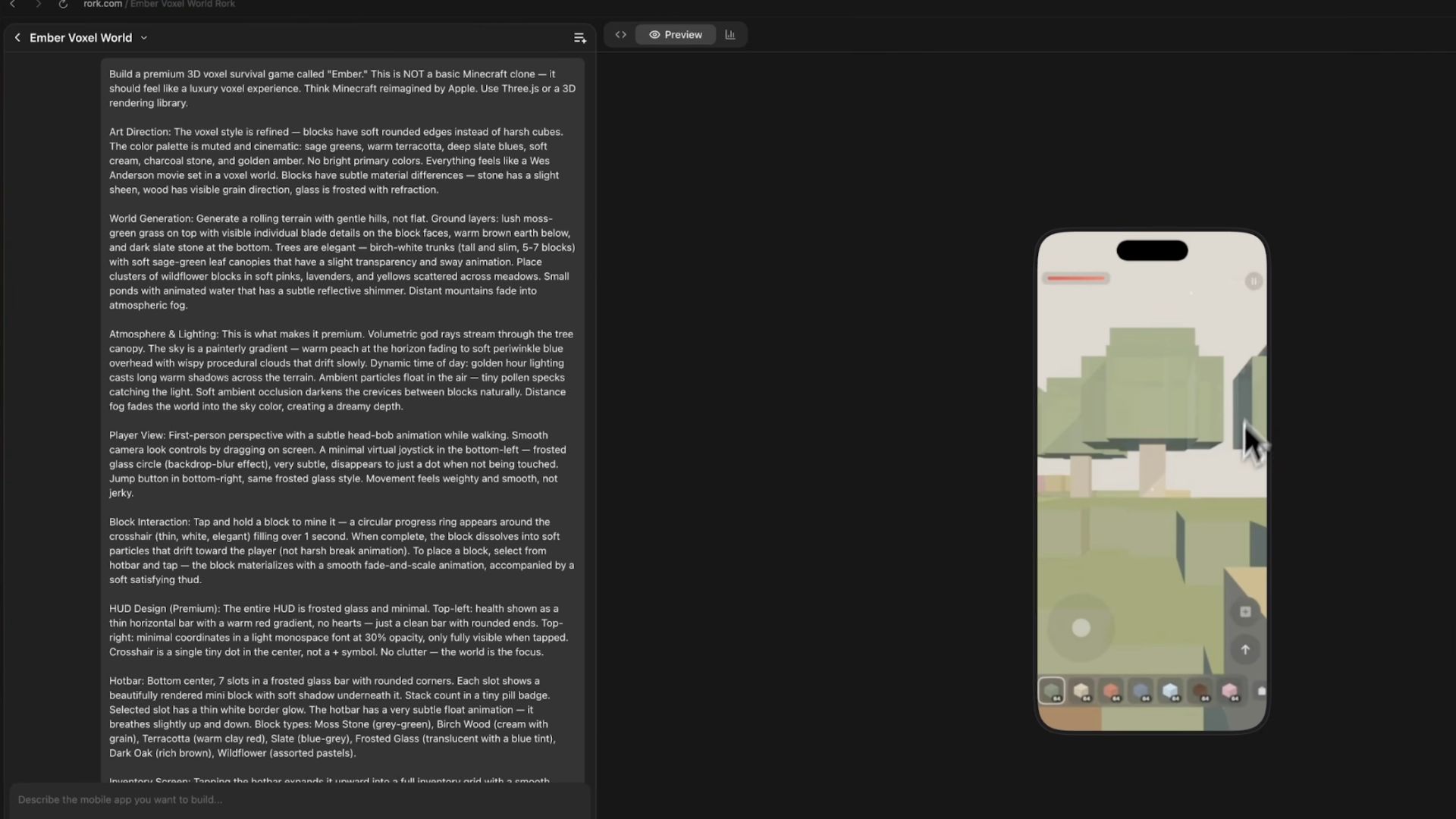 You’ll see progress updates as the agent works. A live iOS simulator preview appears directly in the browser, showing the app UI as it’s being built. At this stage, the app is already functional, but it’s still running in a simulated environment.