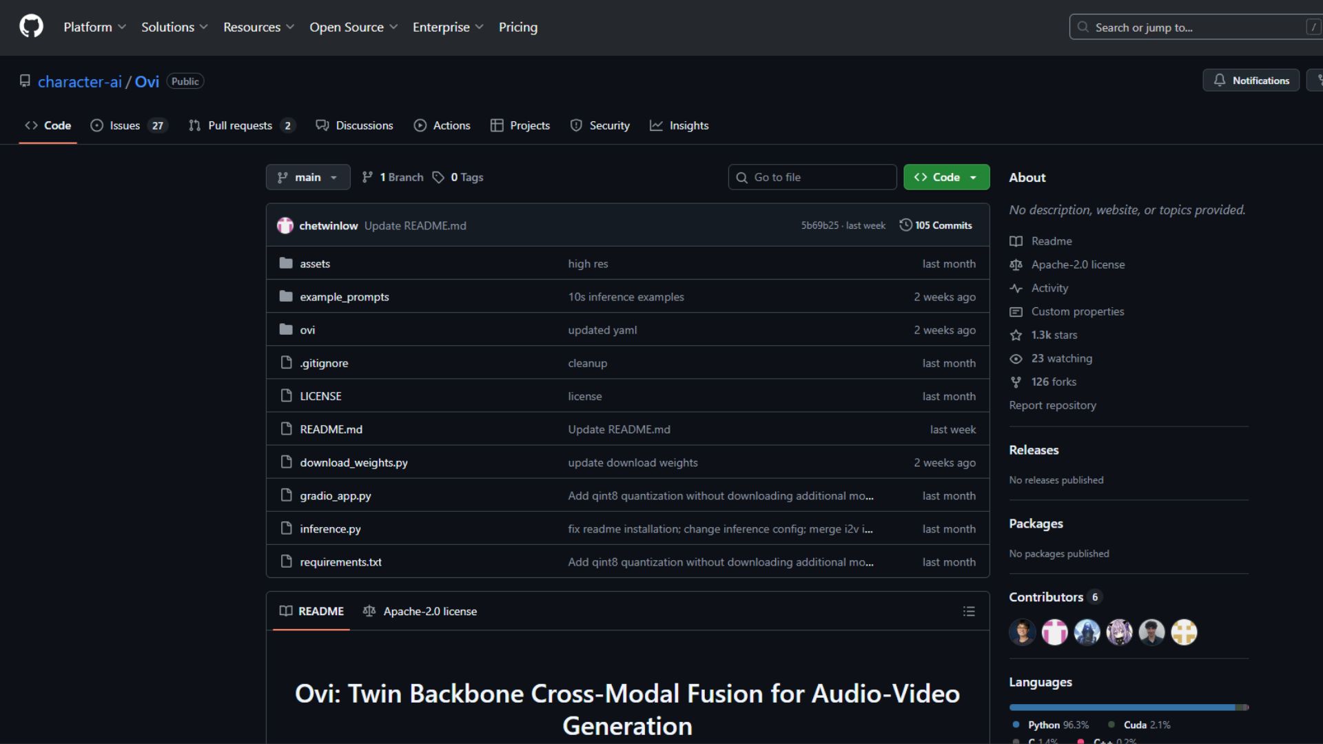Head over to the official Ovi GitHub page. This is where youāll find everything you need: the training details, prompt format, resolution notes, and the exact models required. Ovi was originally trained on 720Ć720, and the developers explain how to structure prompts using the S: and E: markers, including when to end audio captions with āaudio_cap.ā