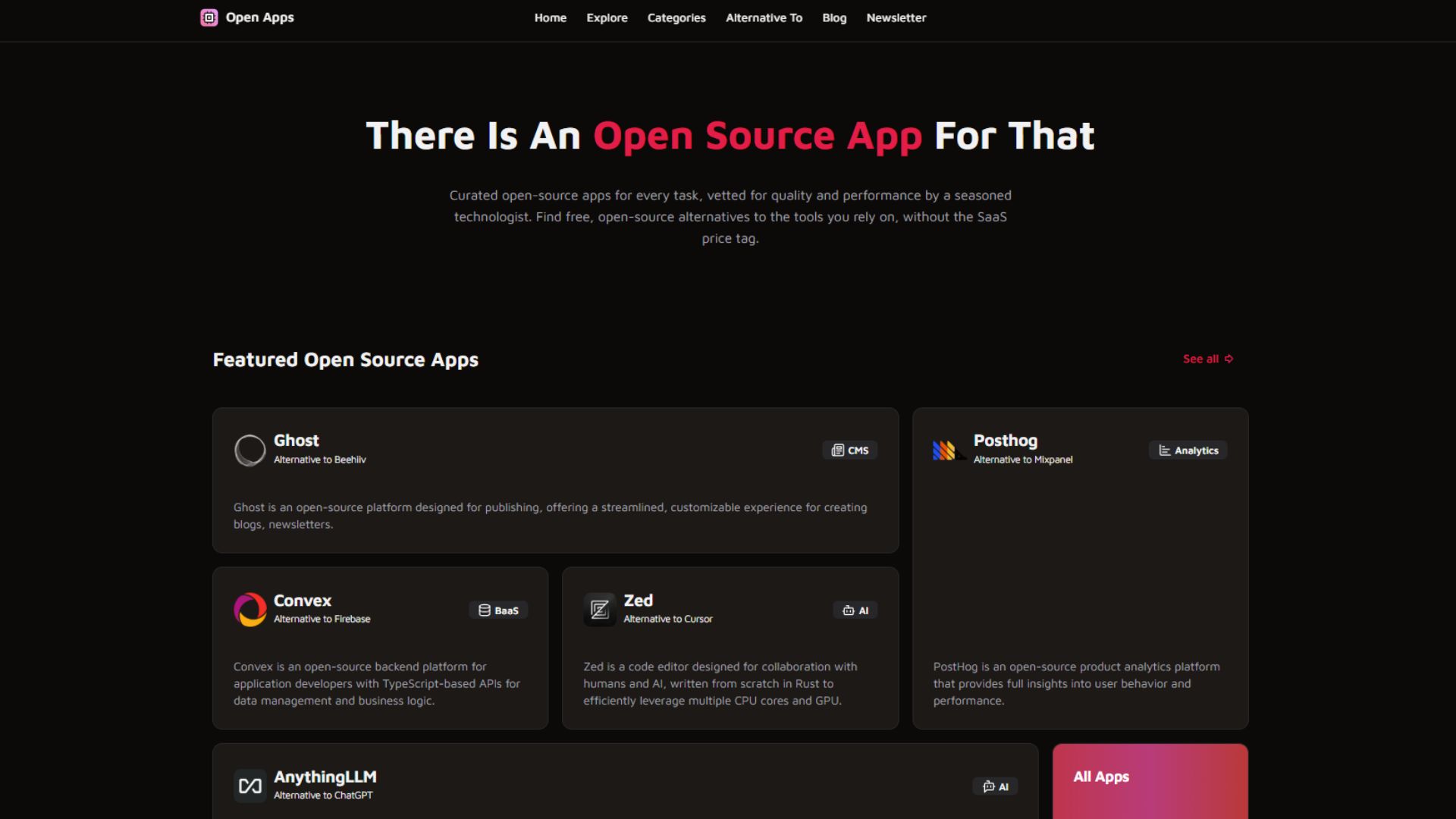 Head over to OpenApps. At the top of the homepage, you’ll find a section labeled “Alternative To.”