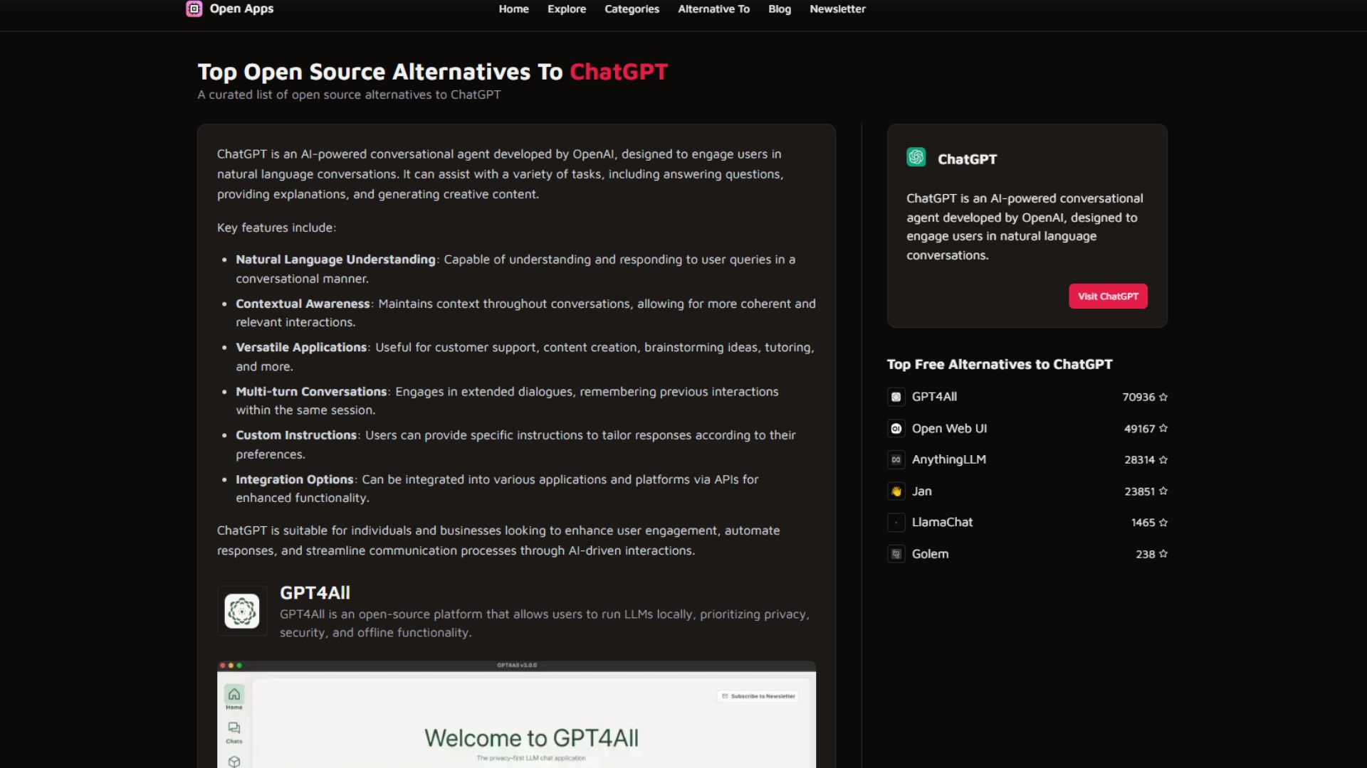 Click on any alternative to open its full profile. Each page explains what the tool does, how it works, its unique features, and where you can download or self-host it.