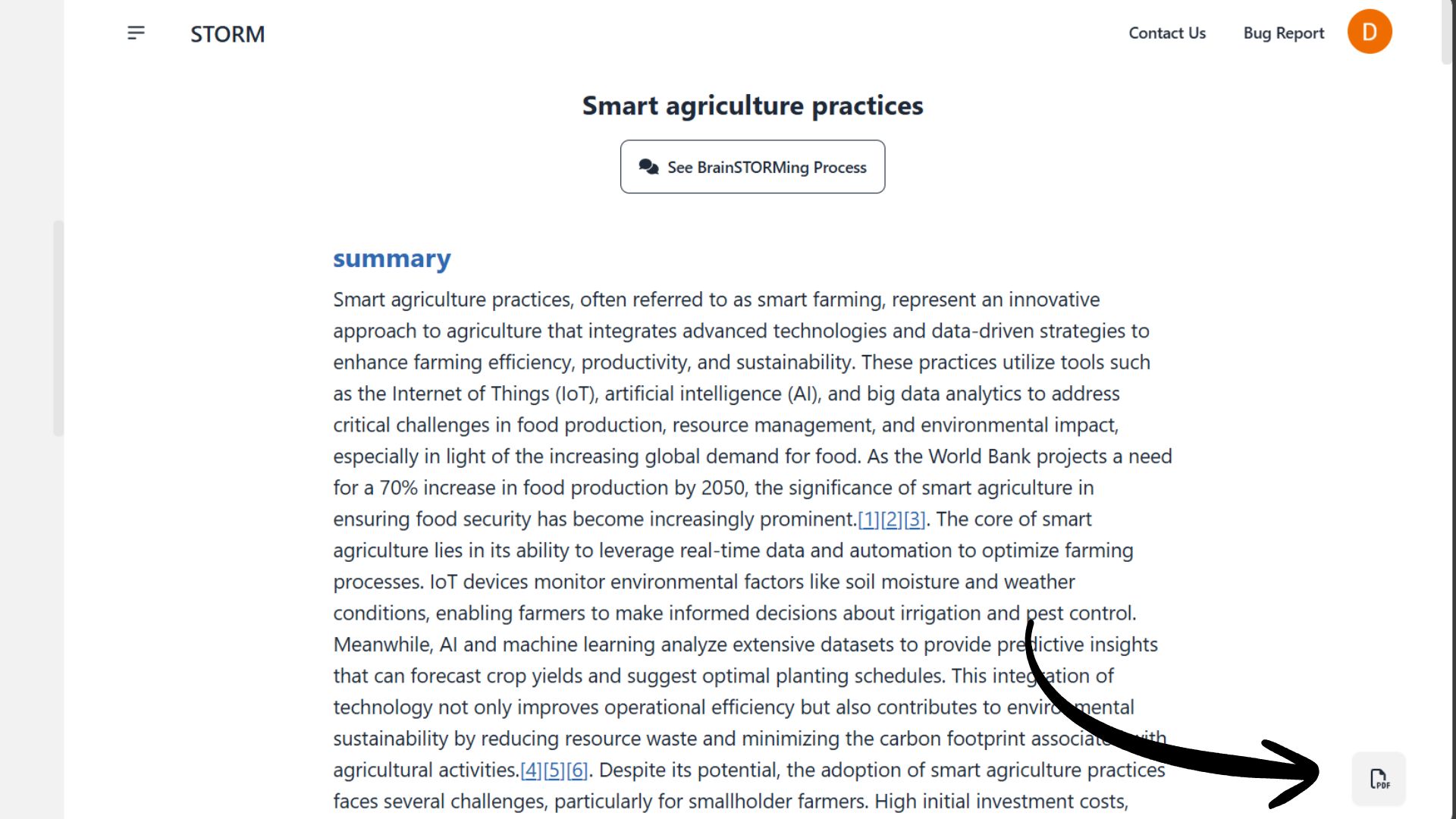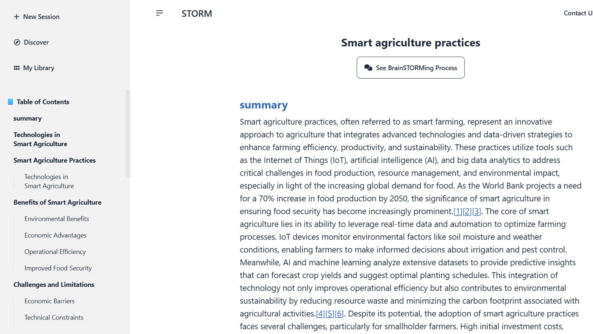 Smart agriculture practicesSwitch to Co-STORM mode from the dropdown.
