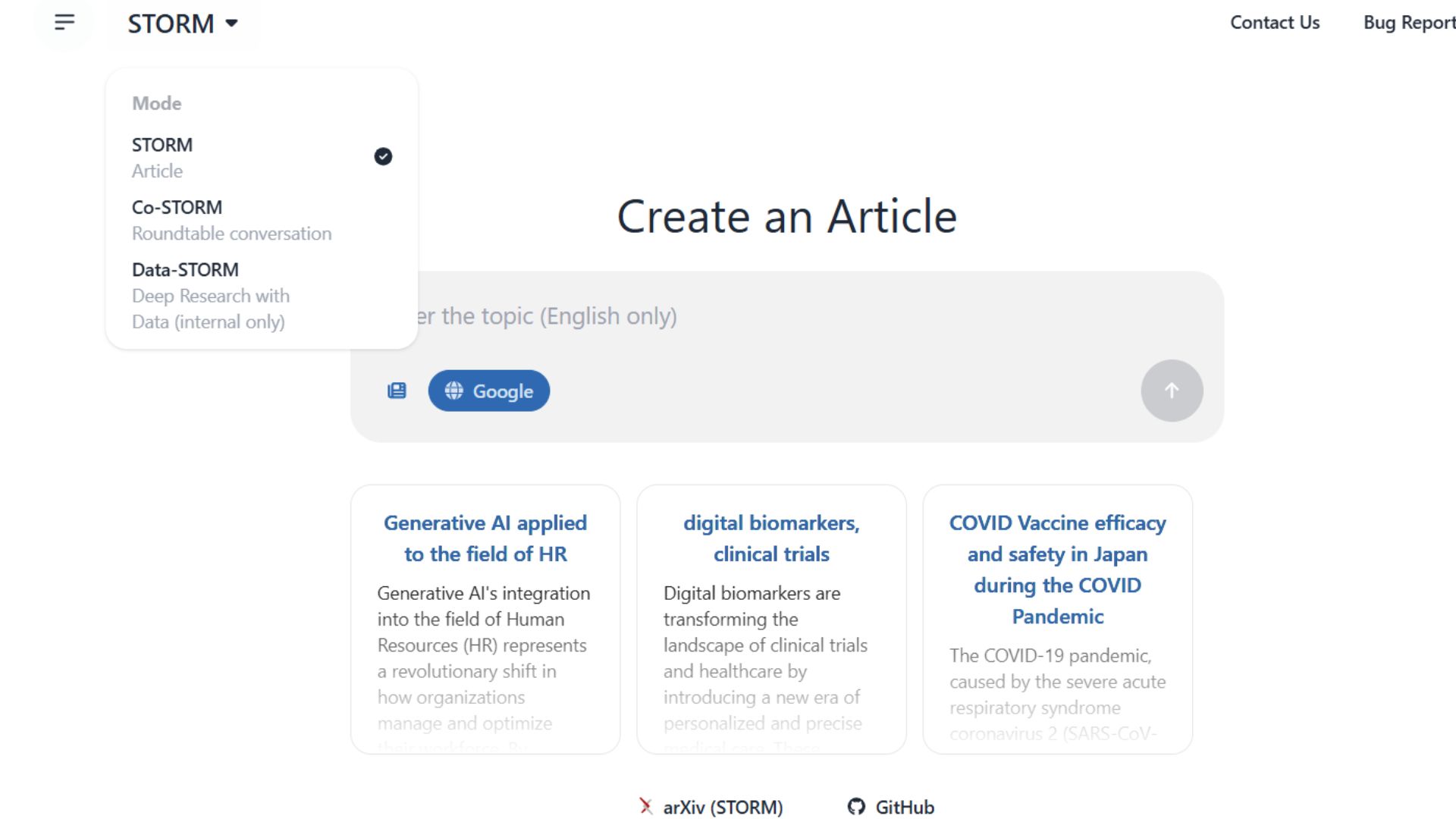 In STORM mode, you’ll see a text box that says “Enter a topic”