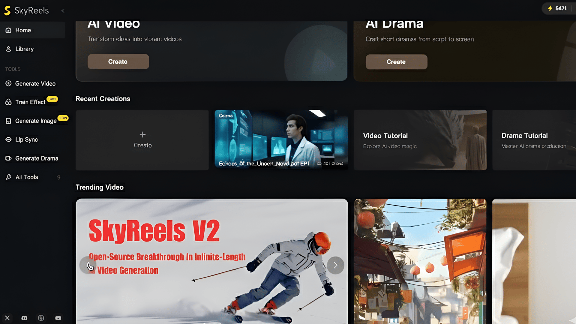 Open your browser and go to the Skyreels platform. Once the homepage loads, you’ll land on a clean dashboard showing multiple AI tools.