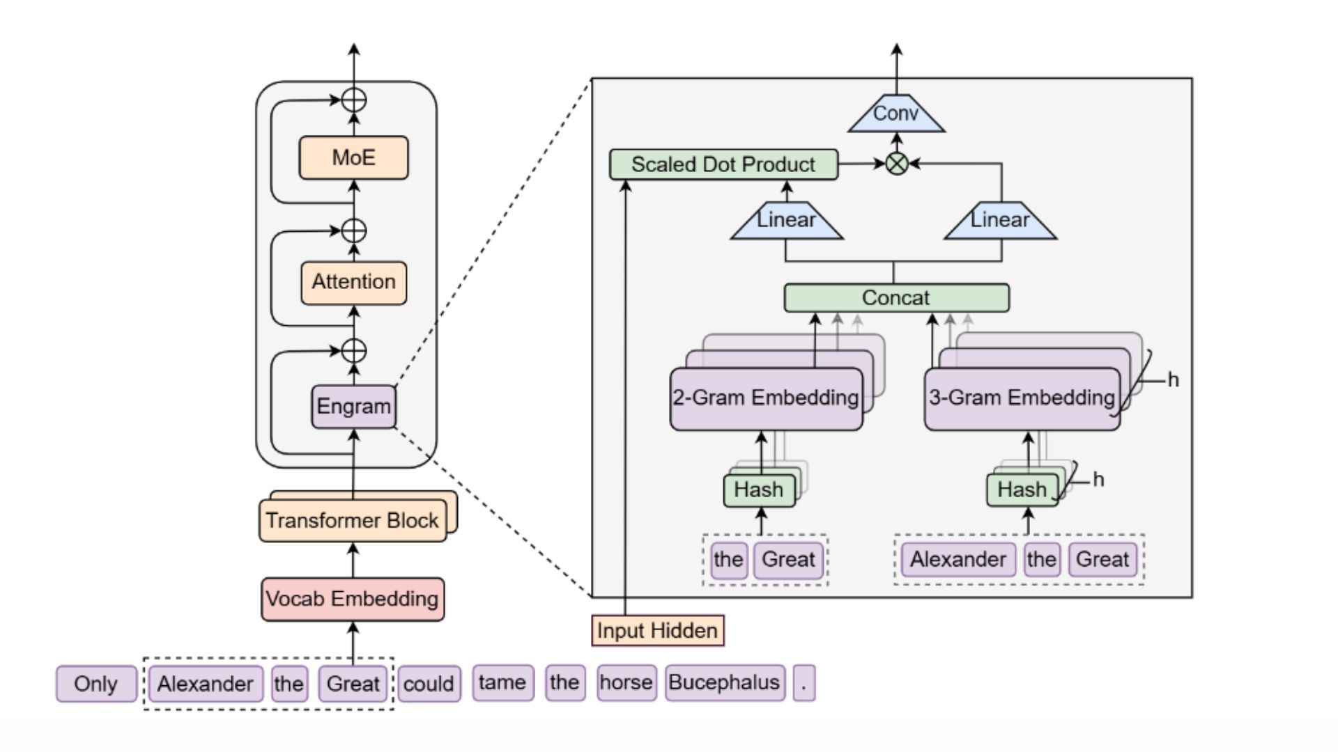 Engram enables O(1) knowledge lookup using hash-based retrieval + context-aware gating