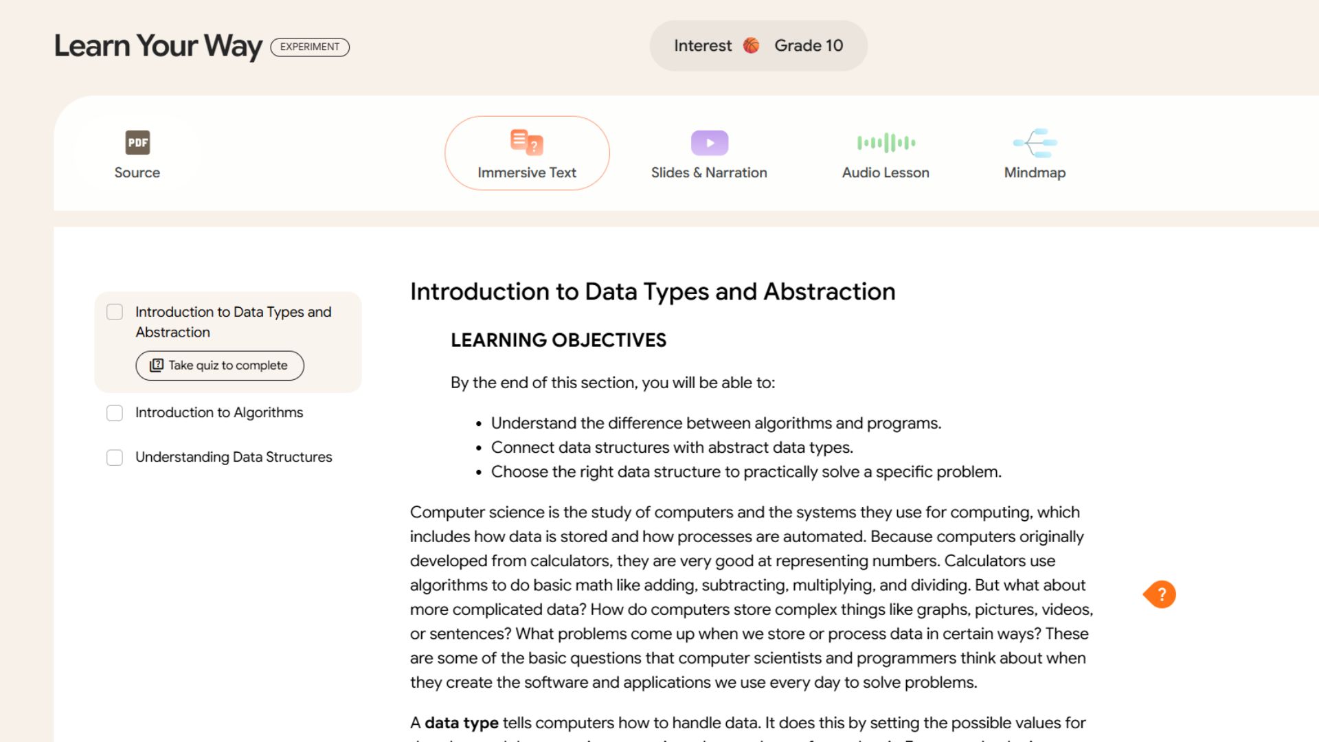 Once selected, Learn Your Way will transform the textbook content into something completely personalized.
