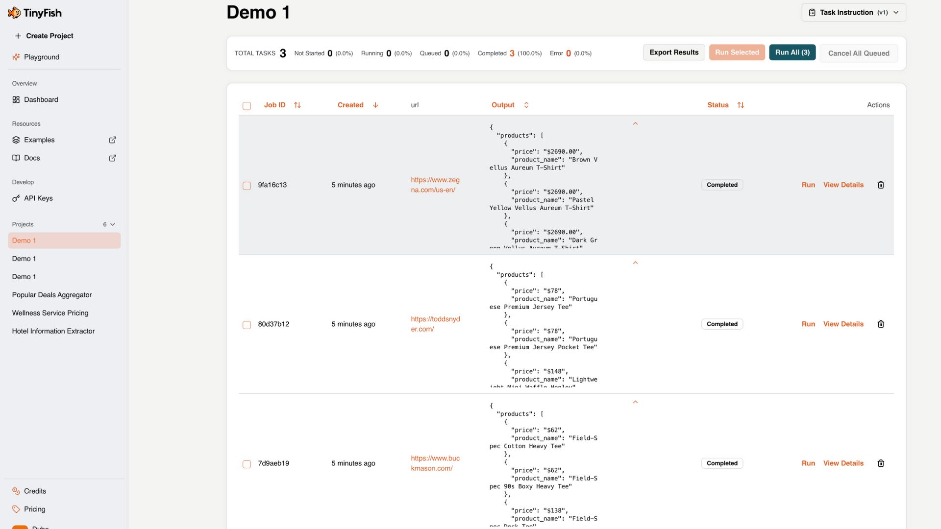 When the run finishes, Mino returns clean, structured JSON with the extracted data. You’ll see fields like product name and price neatly organized, ready to be consumed by other tools or workflows.