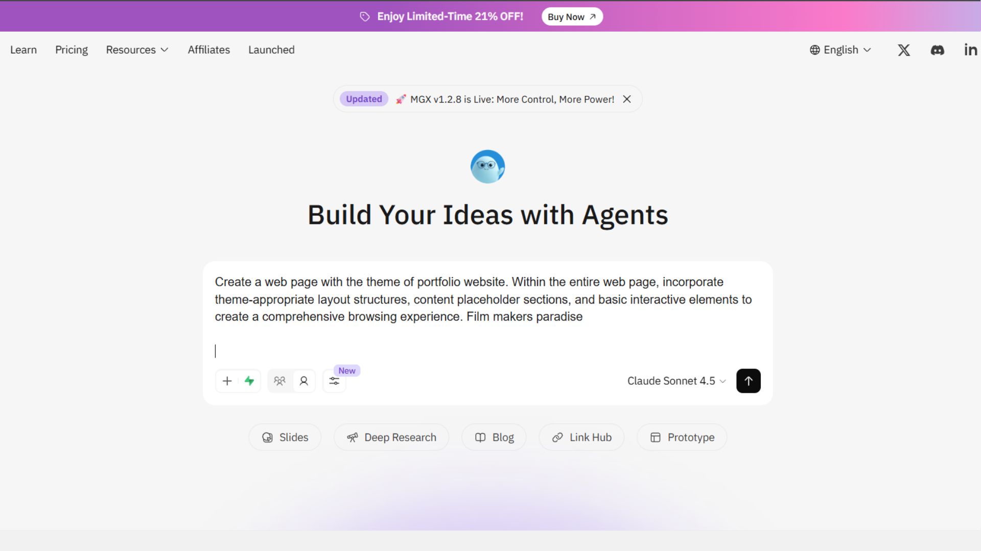MGX immediately activates all five agents. You’ll see the interface transition to your working environment.