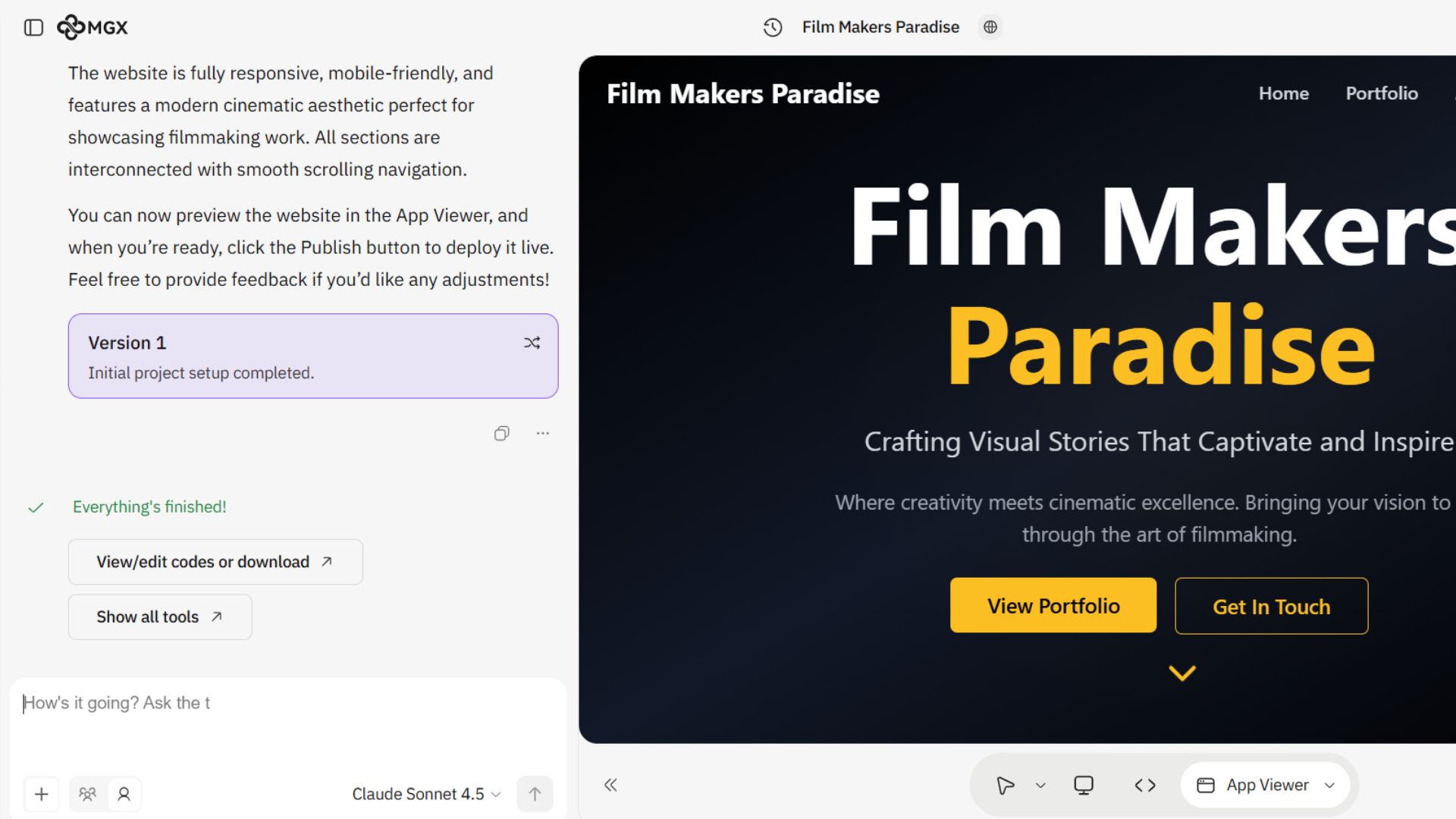 Now that Version 1 is ready, you can continue improving the project simply by telling the system what to add or refine.
