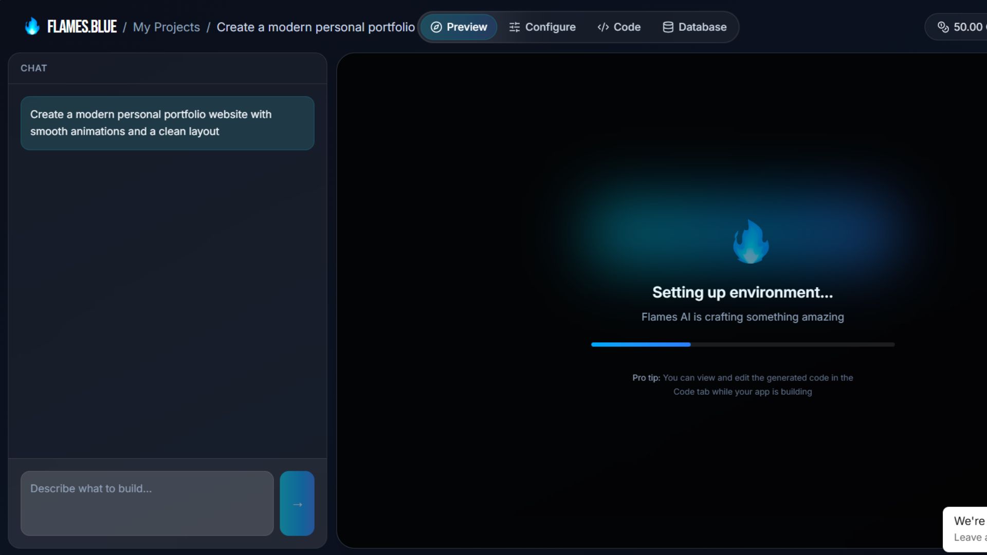Head over to Flames, youāll see a chat-style interface that asks, āWhat will you build today?ā