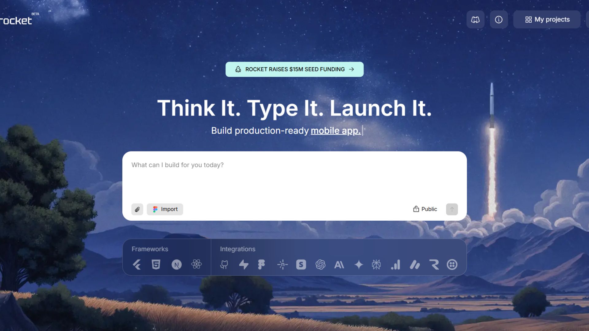 Go to Rocket AI. You’ll land on the homepage with a big input box that says: “What can I build for you today?”
