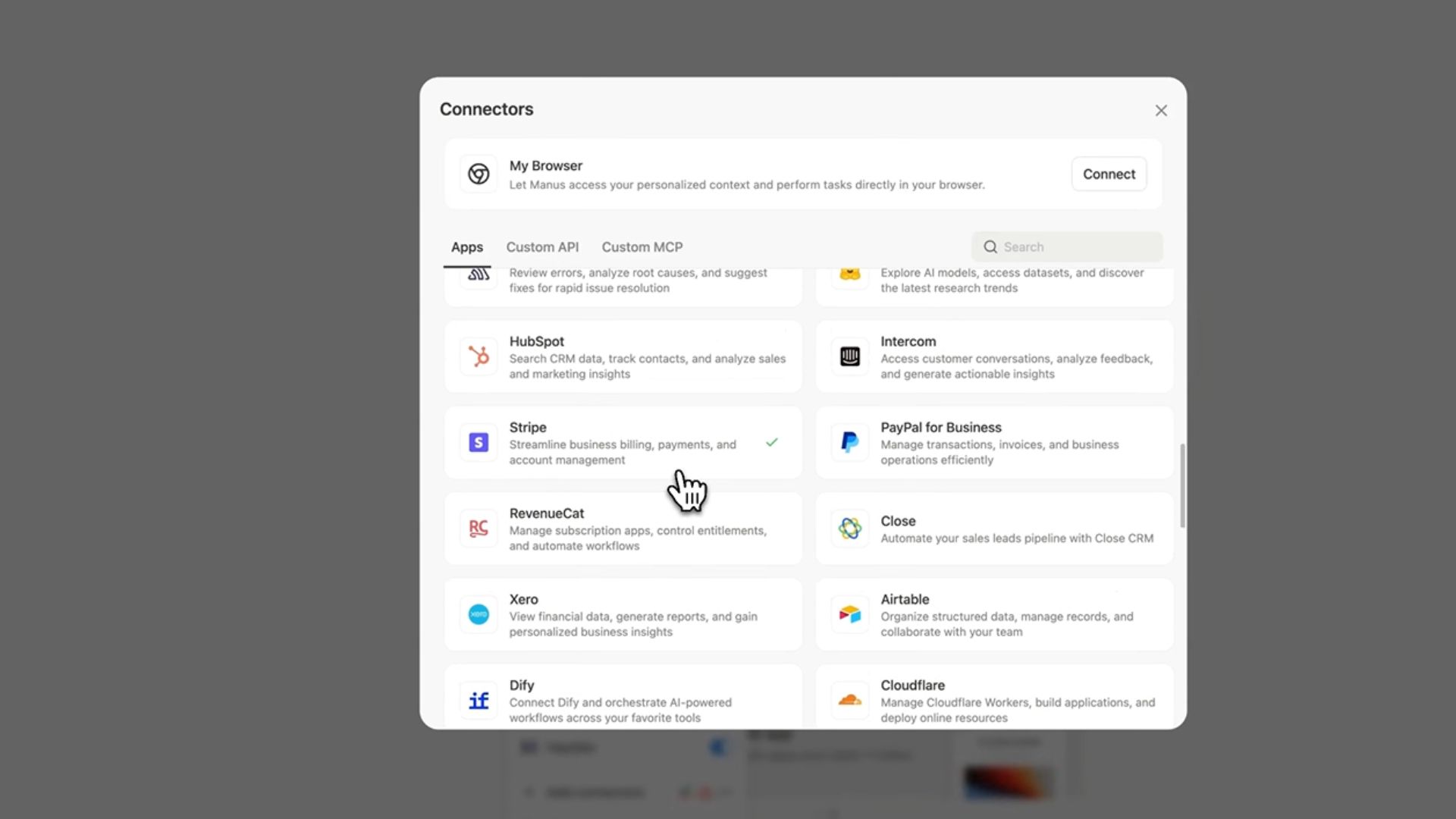 To unlock even more capabilities, Manus connects with automation platforms through MCP. This allows it to work with thousands of apps and actions across spreadsheets, analytics tools, task managers, and more. You can ask it to pull data from Google Sheets, update dashboards, track social media growth, or sync information across multiple platforms automatically.