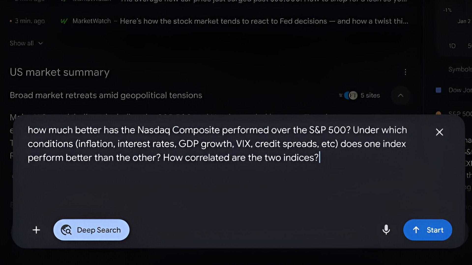 Deep Search delivers detailed, cited investment insights using Gemini AI