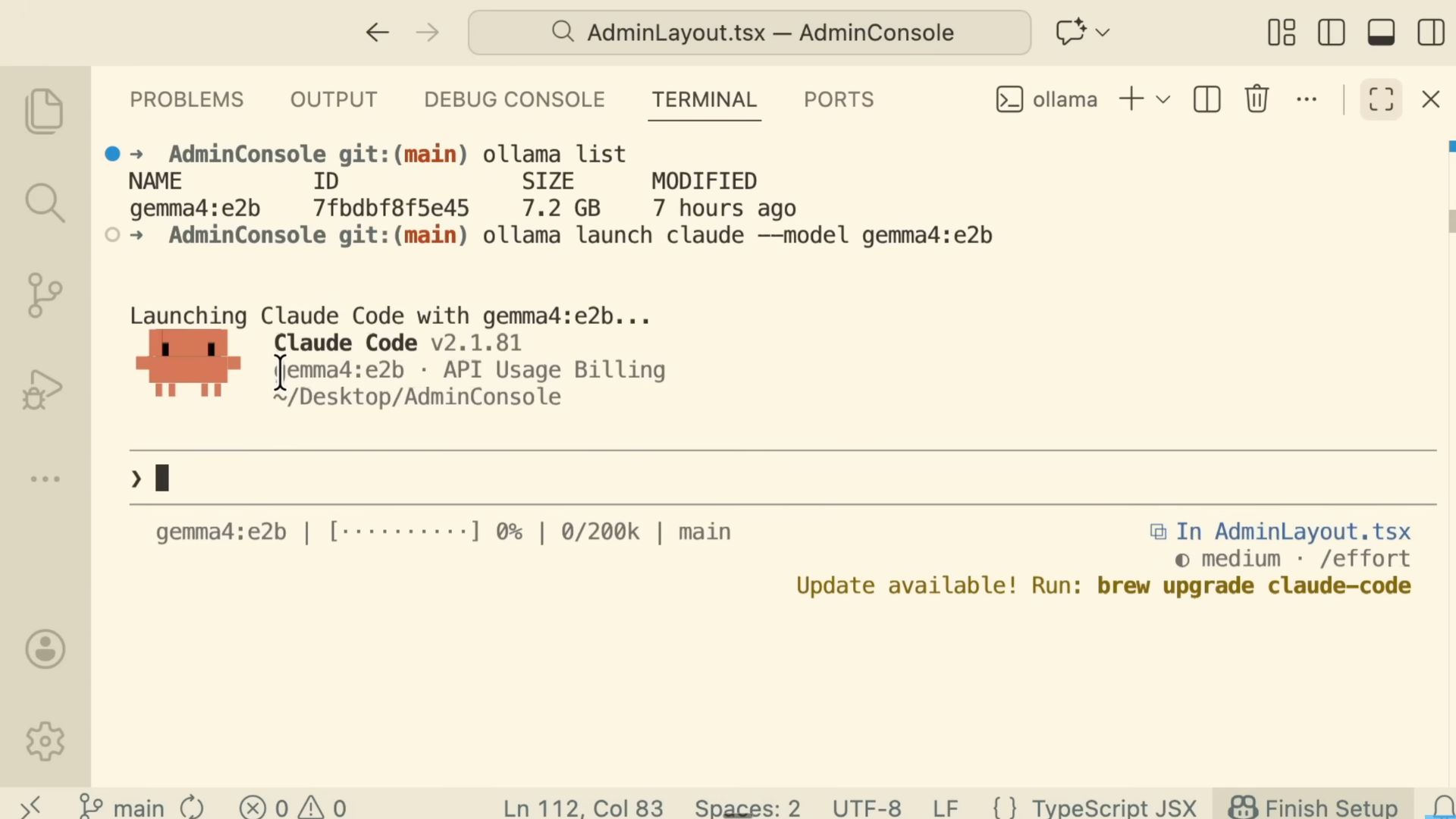 With your API authenticated and Ollama running in the background, you can launch Claude Code and instruct it to use your local Gemma 4 model. Start giving it prompts.